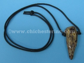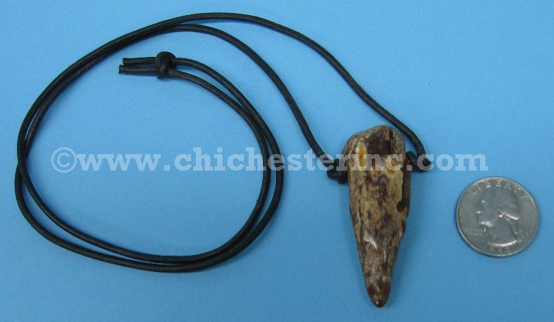fossilized walrus ivory. The piece of fossil ivory is approximately 2" long and 0.75" wide. The necklace is 14" long and weighs about 0.4 oz.