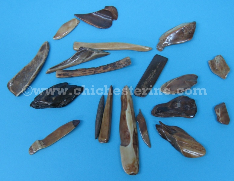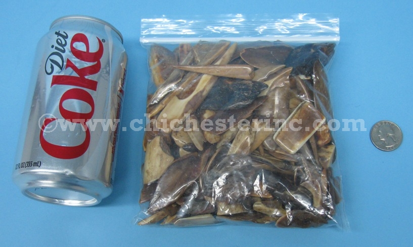These are tumbled and polished fossil walrus ivory pieces from Alaska. They measure approximately 0.75" to 3.5" long and 0.25" to 0.75" wide. The pieces weigh about 0.1 to 0.2 oz. You do not have to buy a whole pound.