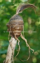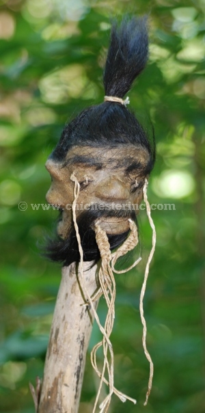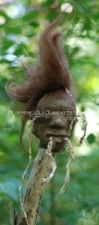 These are reproduction shrunken heads made by the Jivaro Indians in Ecuador. They are made using goat skin and hair or llama hide and hair instead of real human heads. Each one is unique.