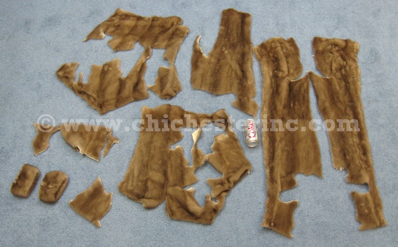 The mink scrap is sold by the pound. All of our mink scrap is mahogany. Please call for availability if you want particular pieces.