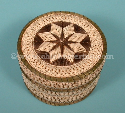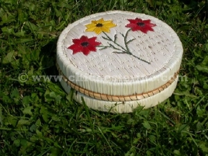 These handmade porcupine quill boxes are one-of-a-kind. They are made by Ojibwa artisans from Manitoulin Island in Ontario, Canada. Native Americans use these to store jewelry and small household items. Beautiful and unique, they are made from birch bark bases covered with designs made of natural and dyed porcupine quills. Most have natural-colored backgrounds and are trimmed with sweet grass.