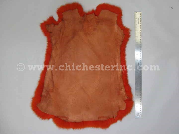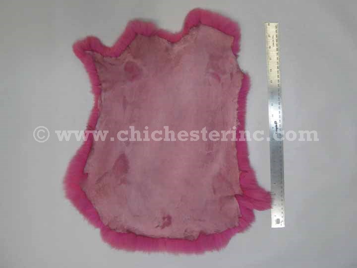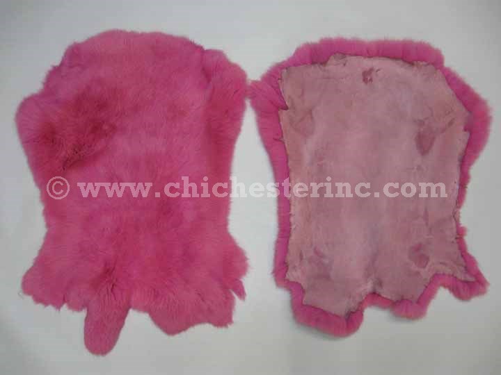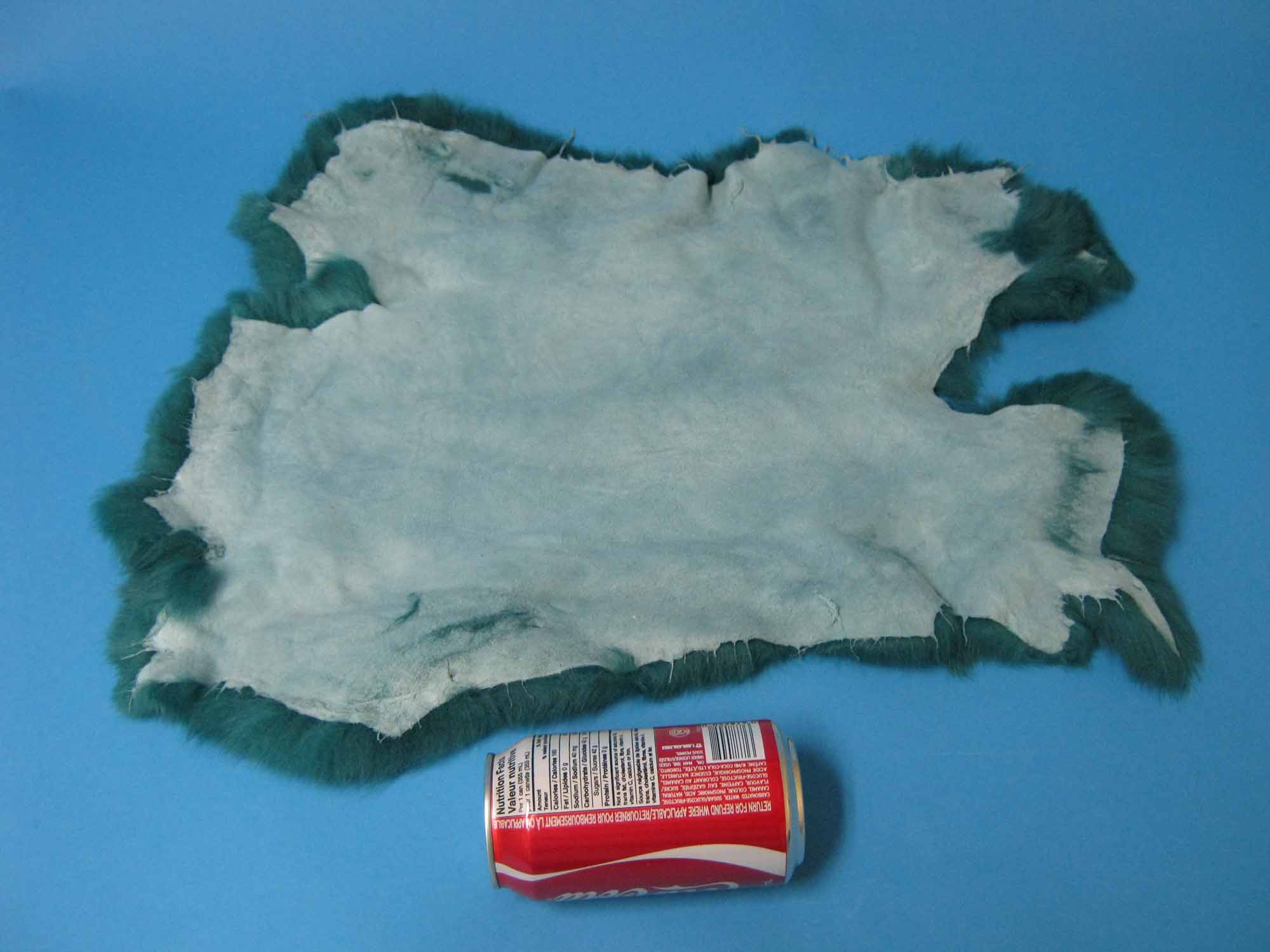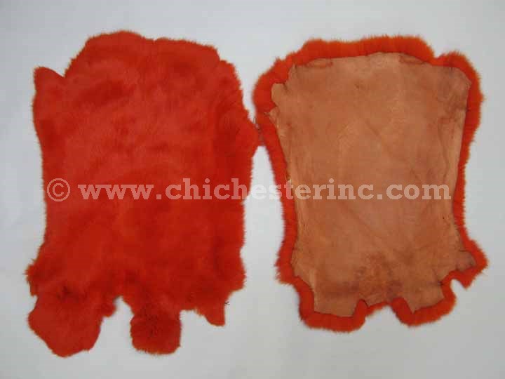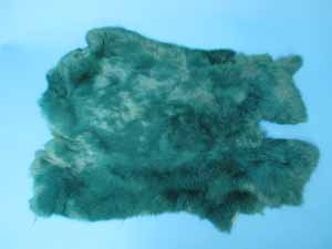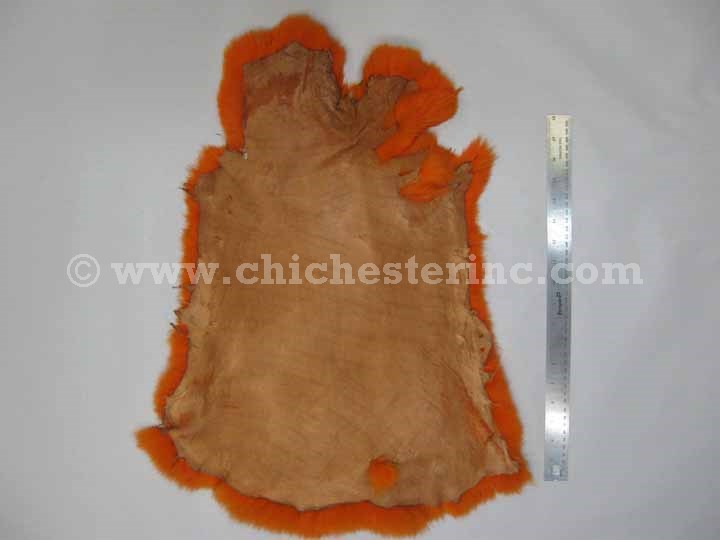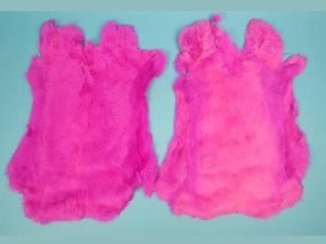 These are dyed jumbo Czech female grade rabbit skins. They are 50% to 200% bigger than the regular rabbits from Spain. They are the nicest rabbits we have ever seen. They are soft-tanned, big, and very heavily furred. The hair is 1" to 1.25" long. They are ideal for resale or for craft projects requiring excellent material. They are suitable for trim on parkas, mukluks, and gauntlets. These rabbit skins are chrome tanned.