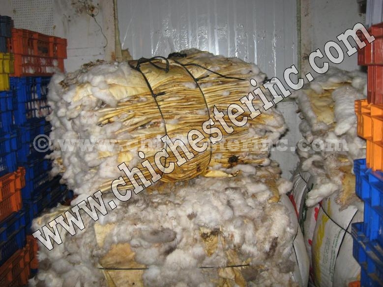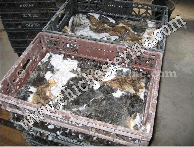 Raw rabbit skins as they come from the slaughter houses.