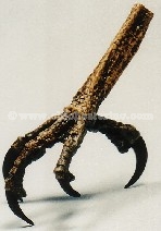 spread from the first and third claw is 1.5". All of the feet are as shown in the picture above. We currently do not offer matching feet (left and right)--sorry.