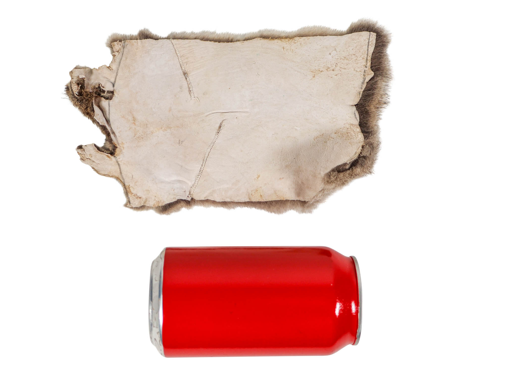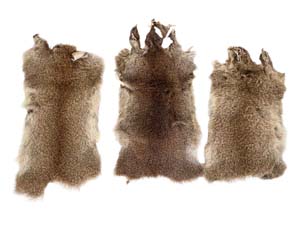 feet or claws on these skins. The skins are cased. Five skins at random weighed 110 grams. |