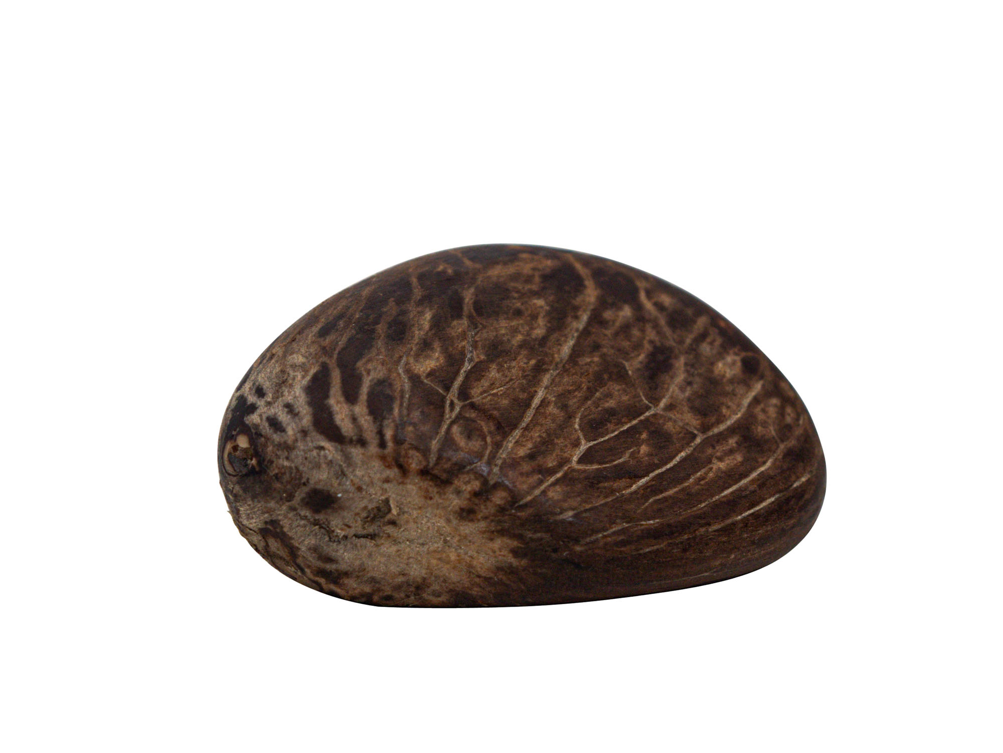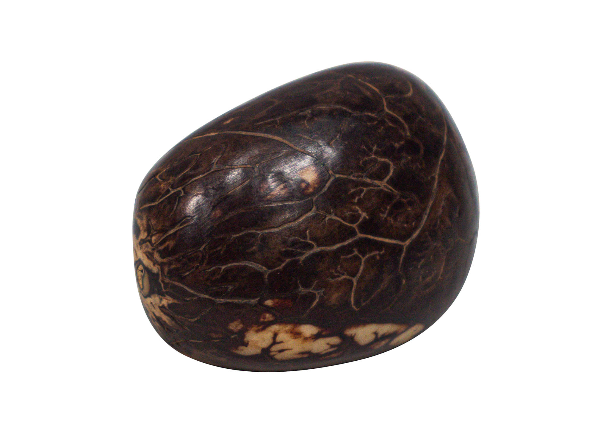 Tagua nuts are from the tagua palm, also known as ivory or ivory-nut palm. Tagua nuts are often substituted for elephant ivory. Most tagua nuts measure approximately 2.5" by 1.5" and weigh 50 grams or 0.1 pounds. Just as the wood grain varies in trees, the composition of each tagua nut can present variations. For example, some pieces may have lines or marks due to the natural grain of the nut. When tagua nuts are heated, they will become a darker brown color and some will darken in some places more than others. Some tagua nuts are more cream-colored, whereas others are more white. The nuts have, and will also develop, a natural patina, which can be more pronounced in some than in others. This is the beauty of working with natural materials -- each piece is a little bit unique!